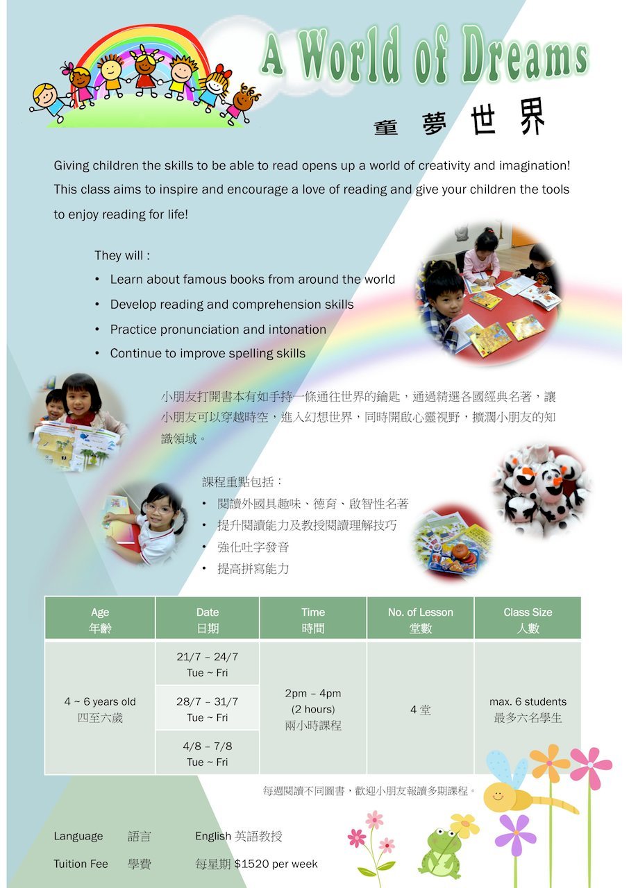 Giving children the skills to be able to read opens up a world of creativity and imagination! This class aims to inspire and encourage a love of reading and give your children the tools to enjoy reading for life!